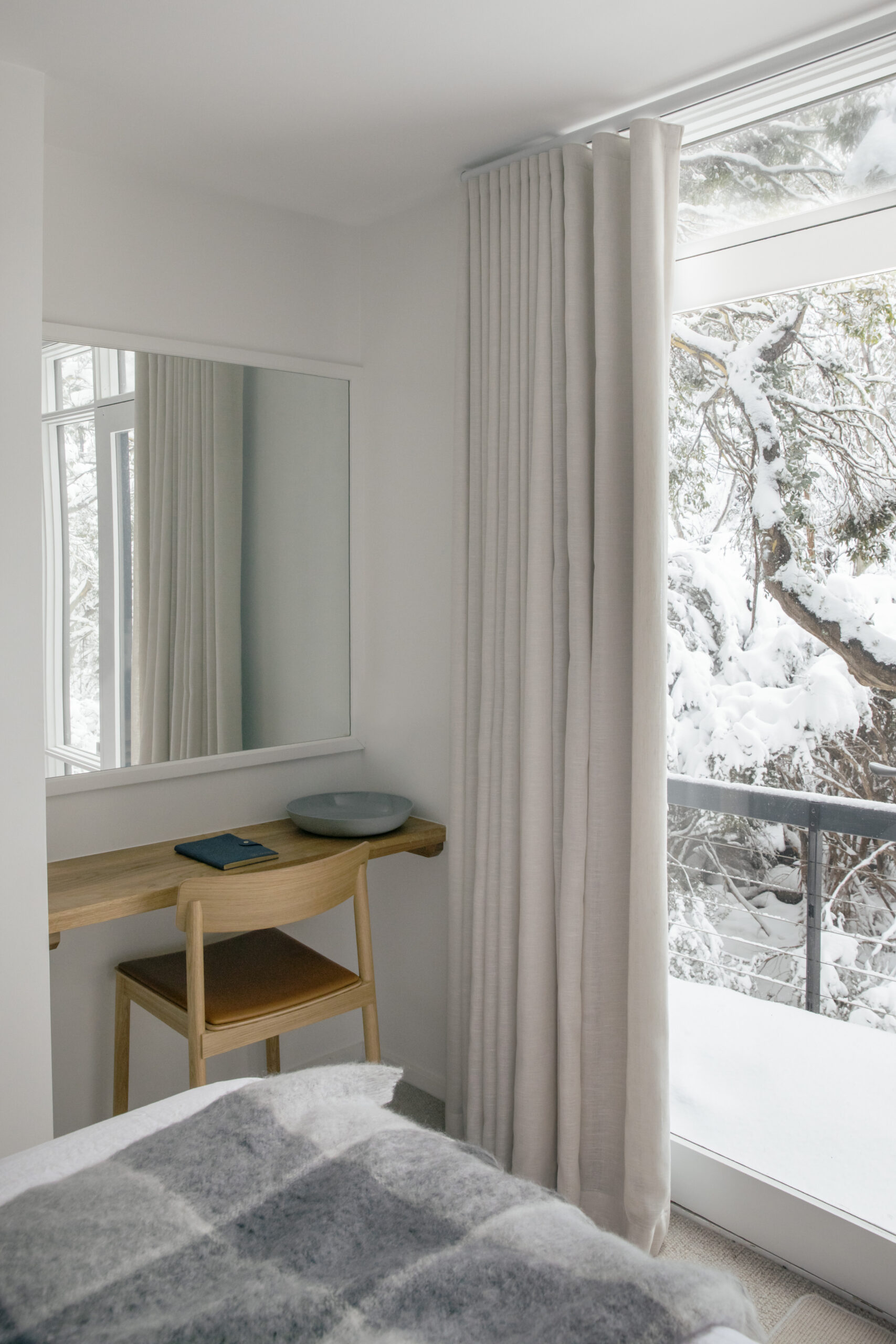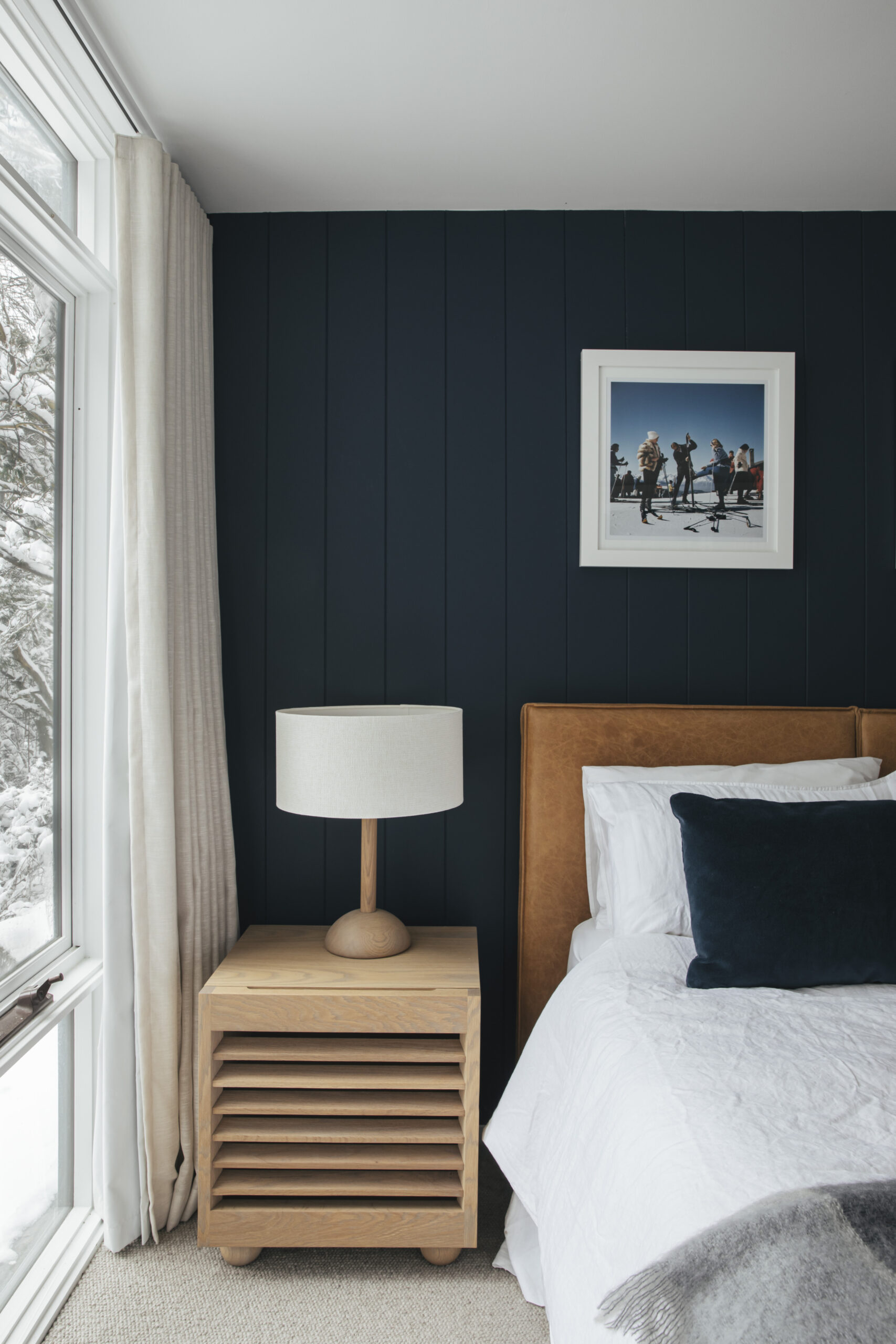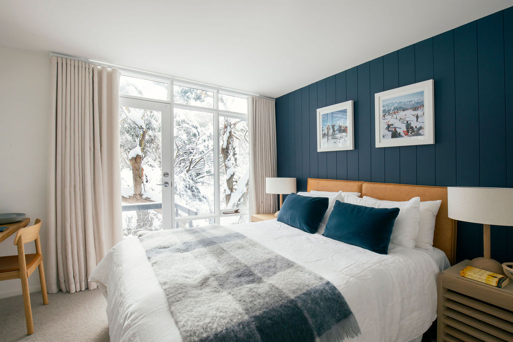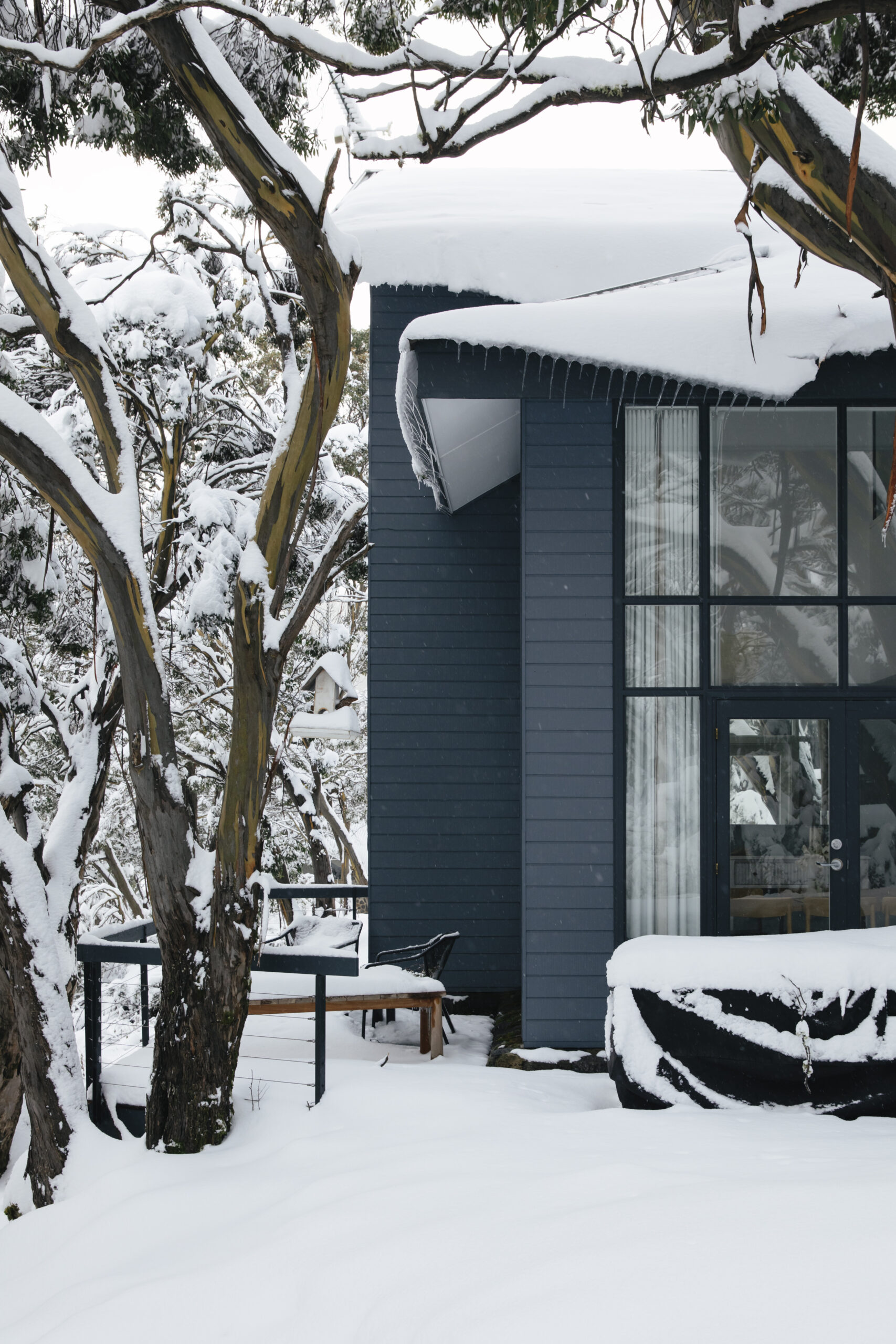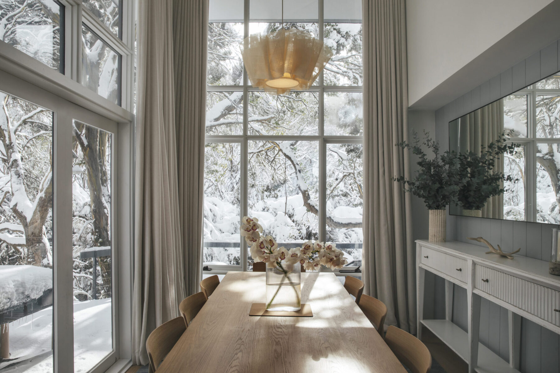 Through a rich colour palette inspired by the Snowy Mountains, forms and textures were utilised to bring a sense of warmth and calmness to mirroring the elegance of the landscape. Light and colour played an important role for this home, in particular the deep Newport Blue by Porters Paint, paired back with Australian timbers, natural light and soft tan leathers. The exterior colours Gunmetal Grey and Squid Ink trims, bring out the colours in the exterior stonework.