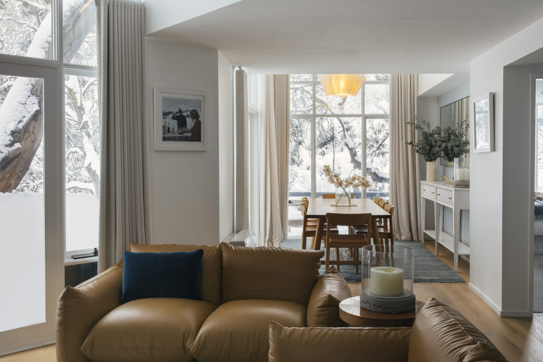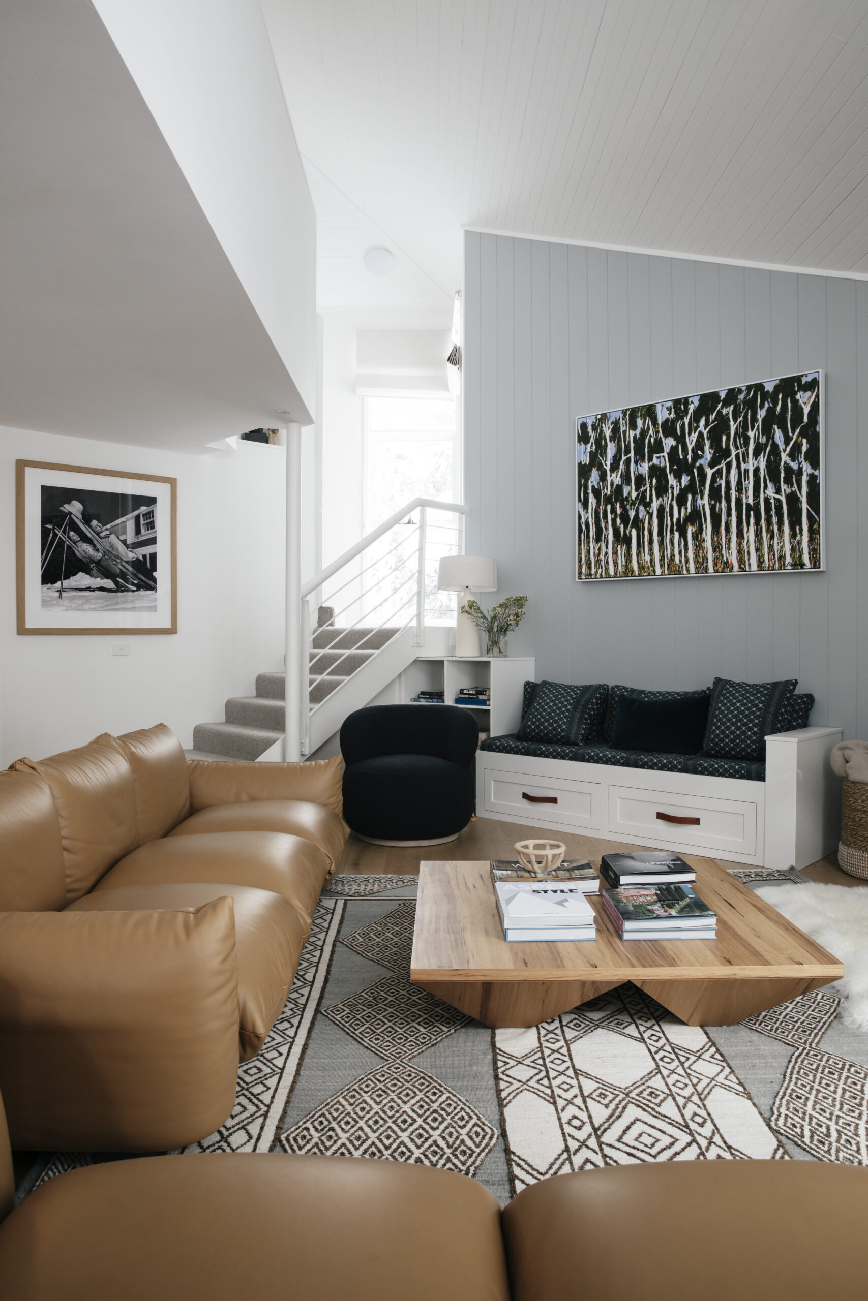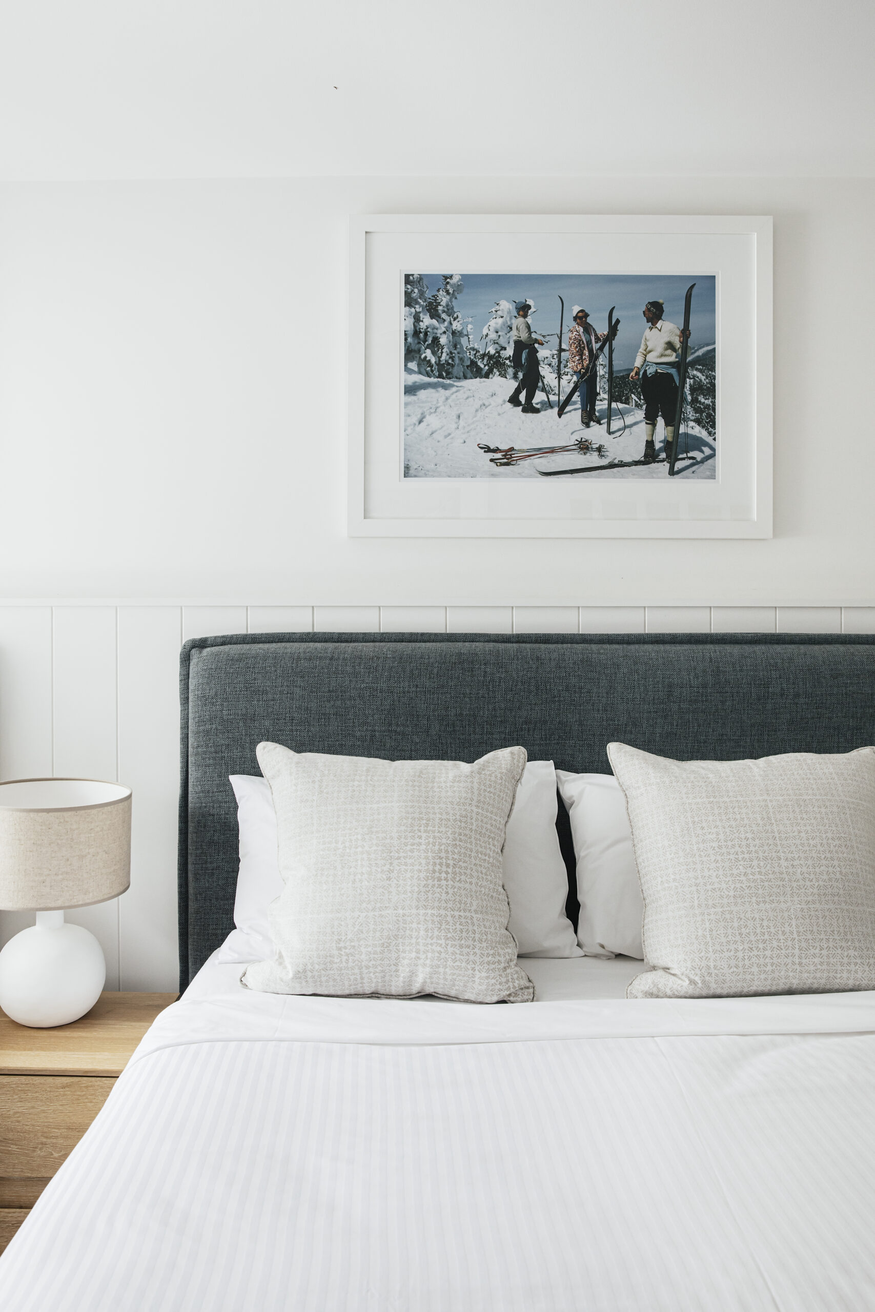 We selected a series of design pieces for their durability but also, the character and interest they add to the space. Leah added texture connecting the indoor and exterior areas through crazy paving and stonework. While indoors, timeless panelling and old school skiing photography prints were used.